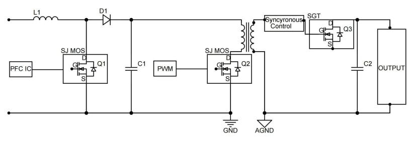 为满足5G电源系统对高效率、低损耗、小型化的需求,MDD半导体推出多款SGT MOSFET产品,适用于不同拓扑结构: